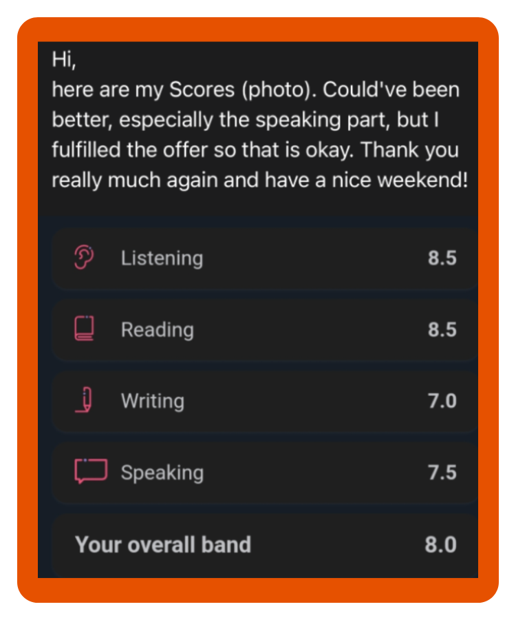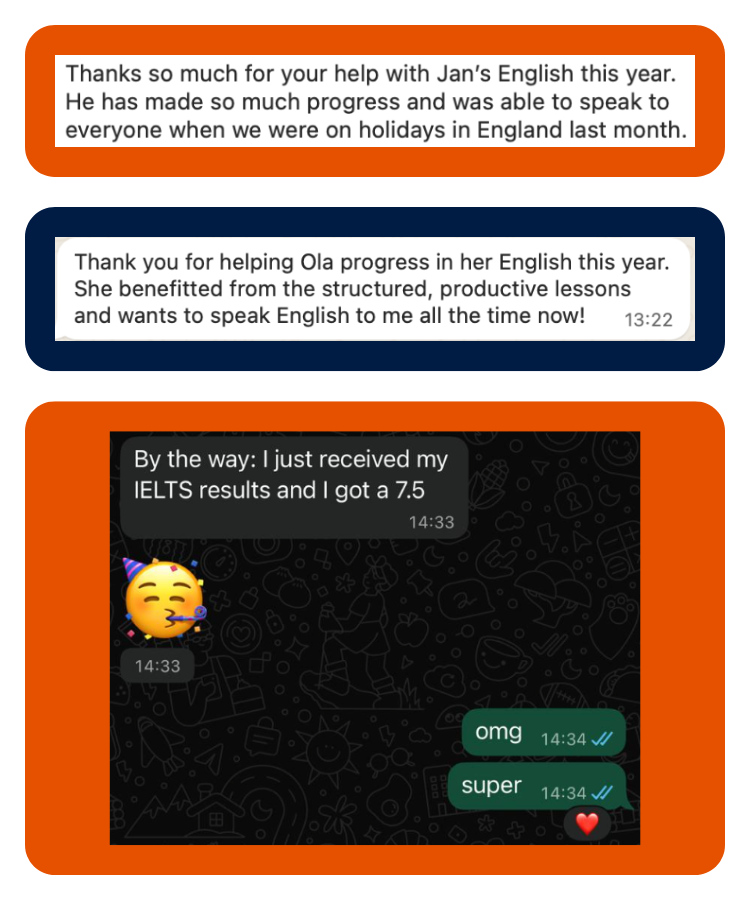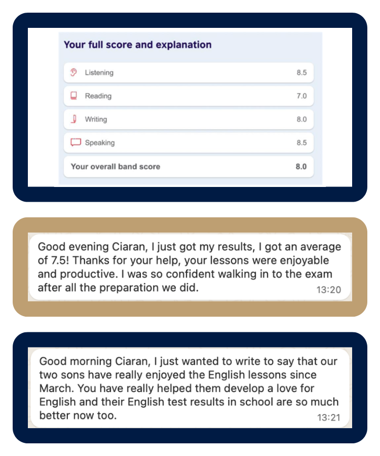 As a teacher and examiner, I support people who, thanks to their English certification, have gained admission to their dream university, secured their dream job or promotion, or moved to their ideal country.